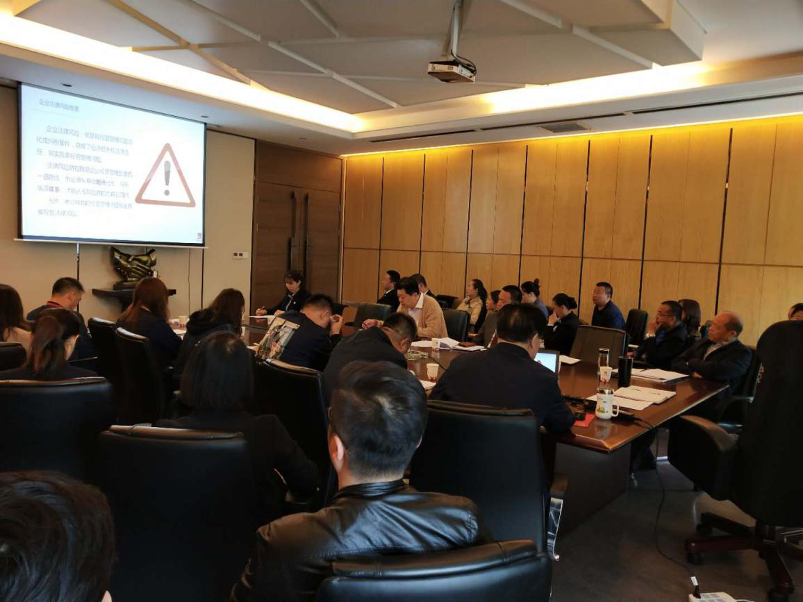 企業(yè)法律風(fēng)險(xiǎn)防控既是企業(yè)經(jīng)營管理的最后一道防線,也必須從基礎(chǔ)始點(diǎn)出發(fā),構(gòu)筑縱深體系,才能達(dá)成風(fēng)險(xiǎn)防控的真正目的。為降低企業(yè)經(jīng)營管理風(fēng)險(xiǎn),提高法律風(fēng)險(xiǎn)防控意識(shí),在公司人力資源部組織下于2019年5月9日上午9:00在集團(tuán)三樓會(huì)議室,特邀集團(tuán)法律總監(jiān)謝生忠、合同主管謝亞玉對(duì)公司中高層管理人員進(jìn)行2019年度《企業(yè)法律風(fēng)險(xiǎn)防控體系/機(jī)制建設(shè)綱要》的第一期培訓(xùn)。